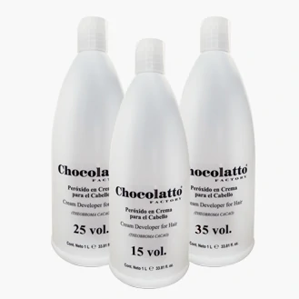Peróxido en crema para el cabello. Su fórmula contiene Theobroma Cacao (Chocolate), que contribuye a la humectación del cabello, ayudando a lograr una buena coloración y luminosa aclaración del cabello. INSTRUCCIONES DE USO: Mezclar ya sea con tinte o decolorante en un recipiente no metálico y totalmente limpio sin residuos hasta tener una mezcla homogénea y aplicar de acuerdo con el proceso que se va a realizar.