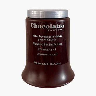 Polvo Decolorante color violeta, Microencapsulado (No volátil), desarrollado para aclarar y decolorar el cabello. Enriquecido con Theobroma Cacao (Chocolate), Macadamia y Jojoba, que aportan hidratación y resistencia al cabello, ayudando a que no se maltrate aún en decoloraciones altas.